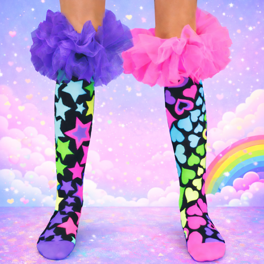 Become a brighter version of you with a pair of our crazy fun socks. Stand out and be empowered by some of our super cute designs, some complete with custom made pink and blue MADMIA Bow at the top