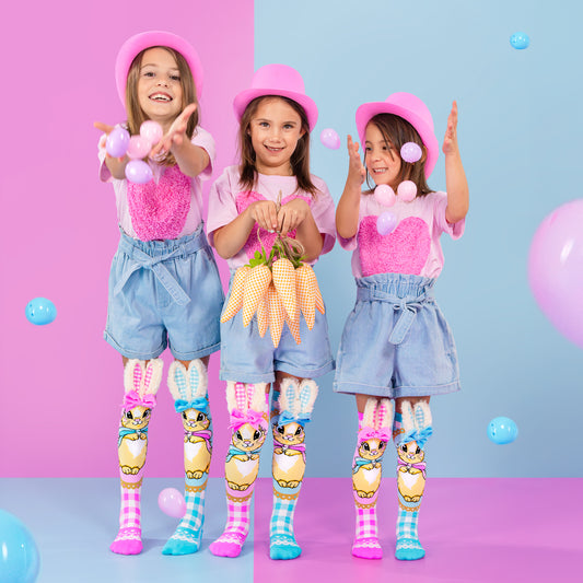Crazy kids socks are the latest trend in the fashion world! Colourful novelty socks for kids are a hot seller this season, with hilarious patterns and crazy sayings. These socks are an absolute must-have addition to your wardrobe this season. At Madmia, we offer a large selection of silly and funny kids socks in many different styles, colours and lengths to fit the needs of children. Children can find all sorts of novelty kids socks, like ones with kitties on them or red hearts made out of polka dots! Some popular types are unicorn socks, bunny socks, mermaid socks, cheetah socks, and more. No matter what you're looking for, we have a huge selection of kids silly socks that will turn heads. Children's novelty socks come in all shapes, sizes and colours, and we have something for everyone no matter what their interests may be.
