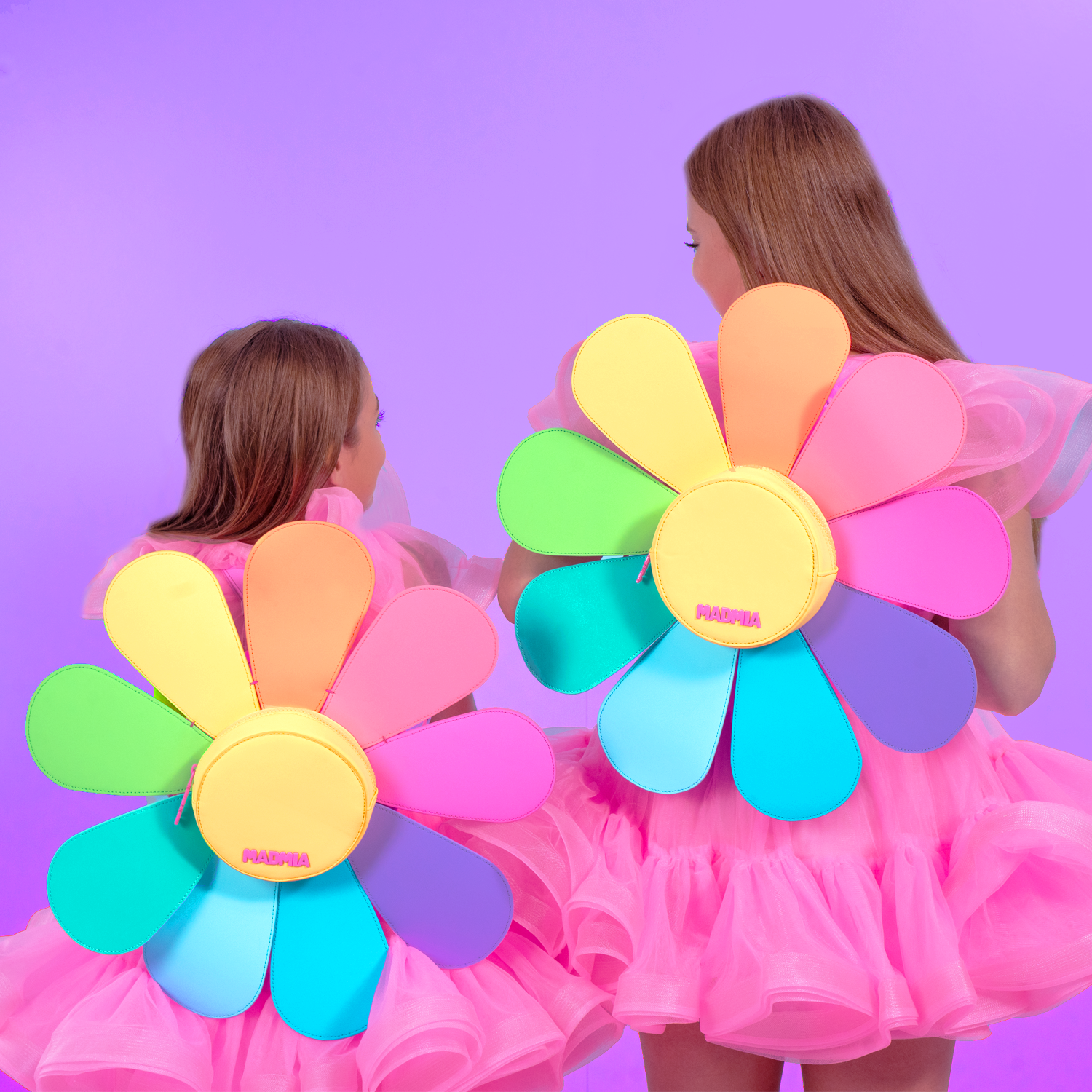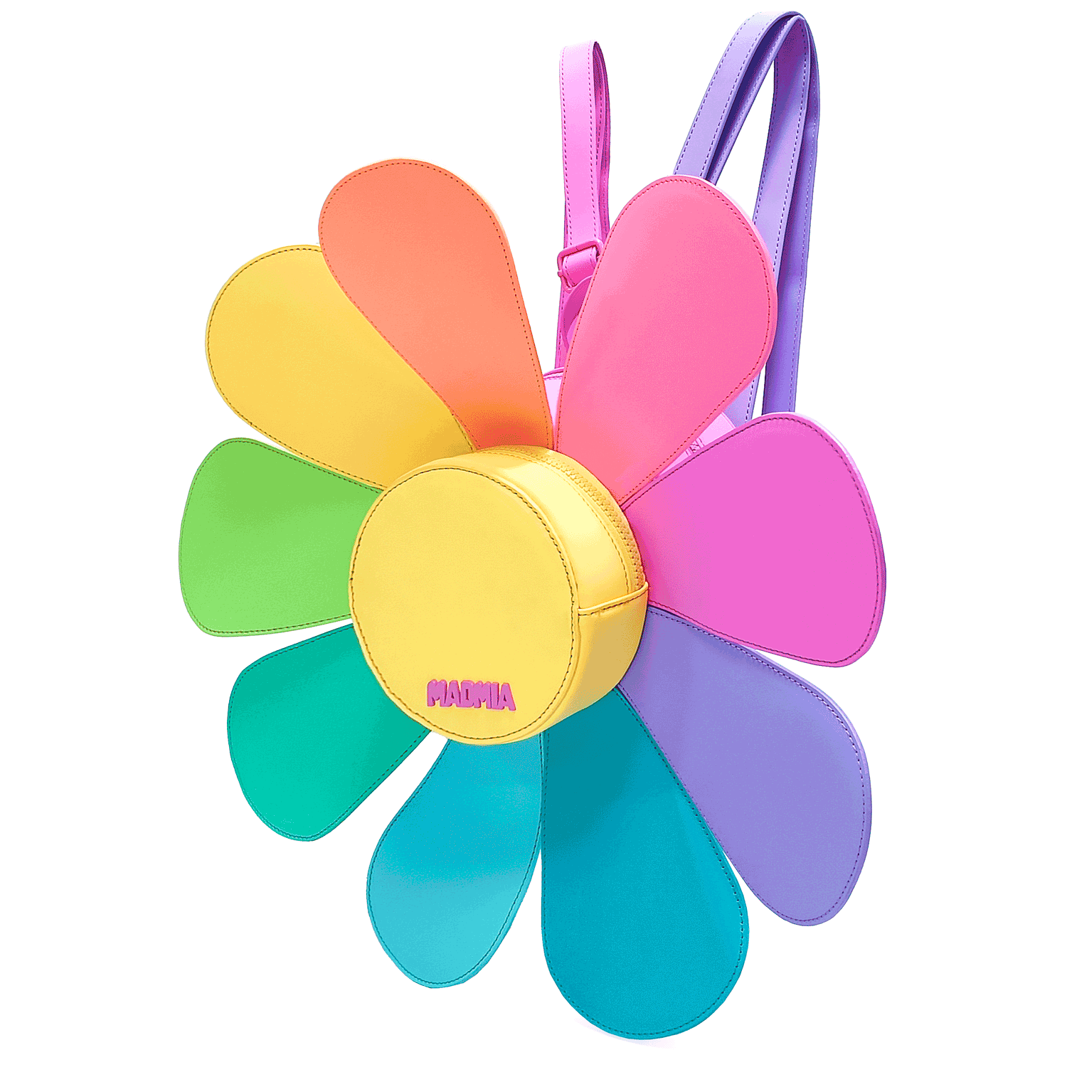 Make every day bloom with our vibrant Flower Power Backpack! Featuring bold rainbow petals, adjustable straps in pink and purple, and a roomy circular centre, this backpack is bursting with colour and joy. It's the perfect accessory for kids and adults who love to stand out and carry happiness wherever they go!