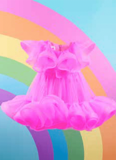 Bursting with layers of vibrant pink tulle and playful frills, this dress is all about creating magical moments. Perfect for parties, birthdays or just going out and about, this dress brings a pop of colour and joy wherever it goes.