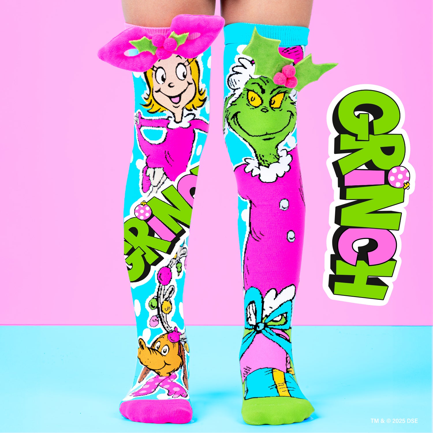 Get festive with MADMIA’s Grinch and Lou Socks! Featuring the mischievous Grinch on one sock and sweet Cindy-Lou Who on the other, these bright, colourful knee-highs with 3D plush details are bursting with holiday spirit. Fun, unique, and the perfect gift for every Grinch fan this Christmas!