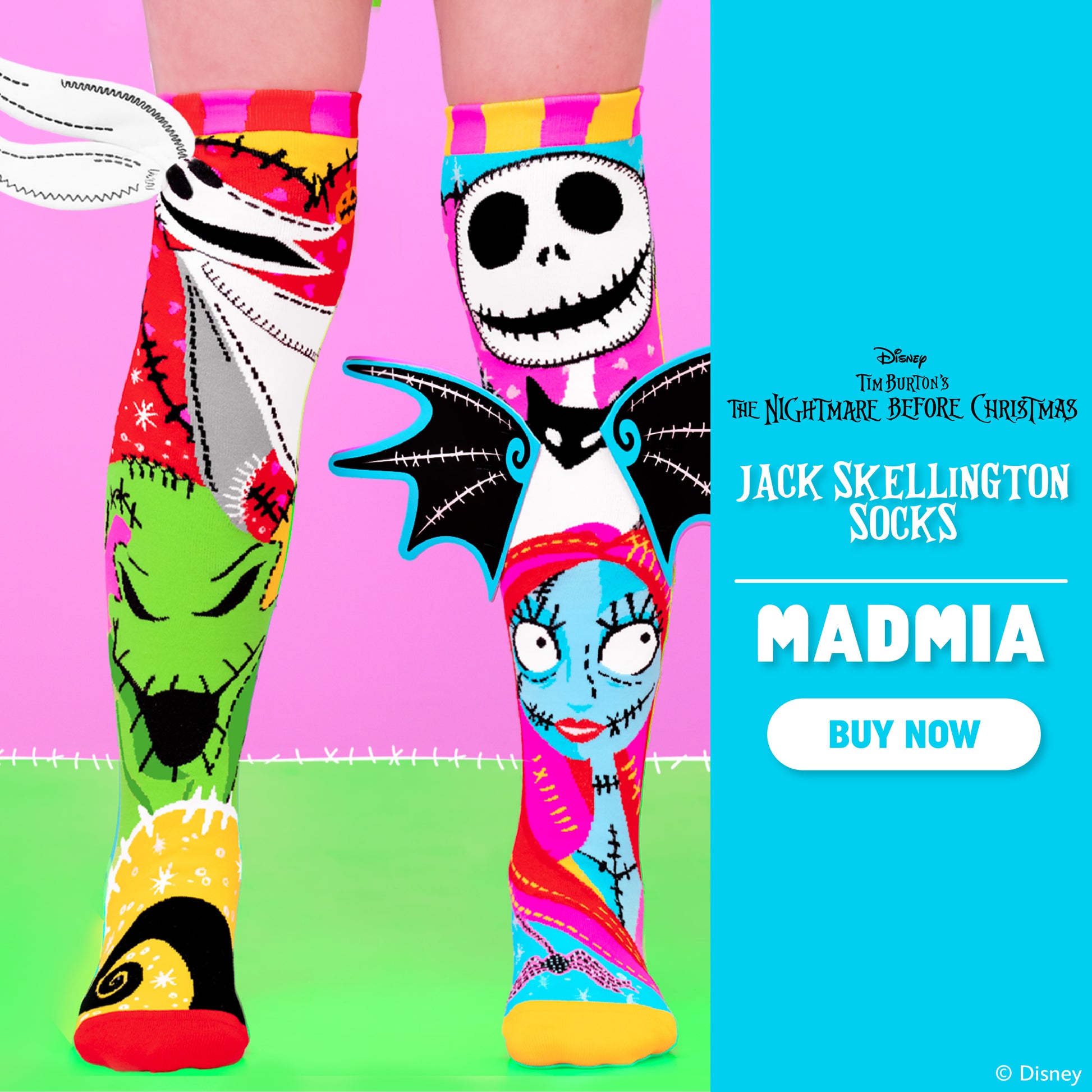 Step into Halloween magic with our Jack Skellington Socks! Featuring Jack, Sally, Oogie Boogie & Zero in vibrant, mismatched designs, plus spooky 3D bat wings and ghost ears for that extra MADMiA twist.