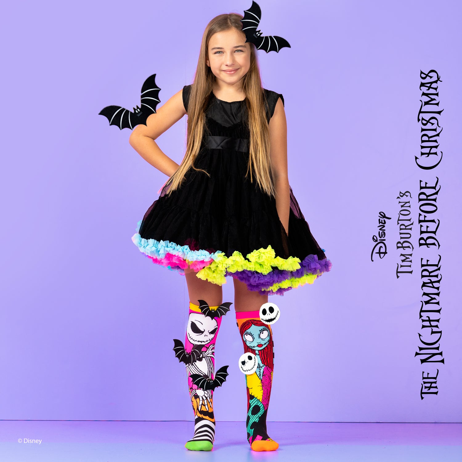 Step into the spooky season with our exclusive Nightmare Before Christmas socks! Featuring custom-made bats and unique designs inspired by Sally’s pallid patchwork on one sock and Jack Skellington on the other.