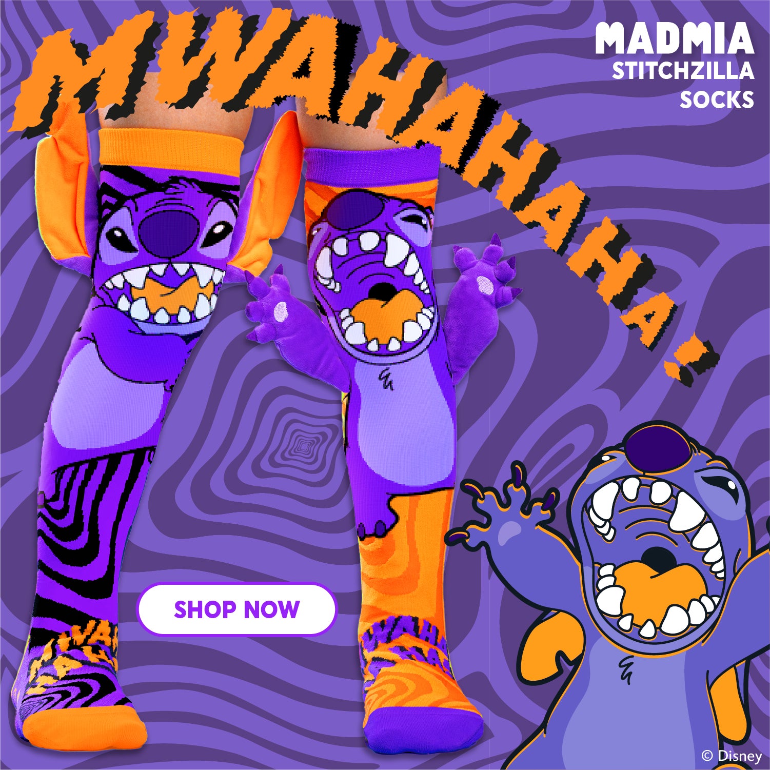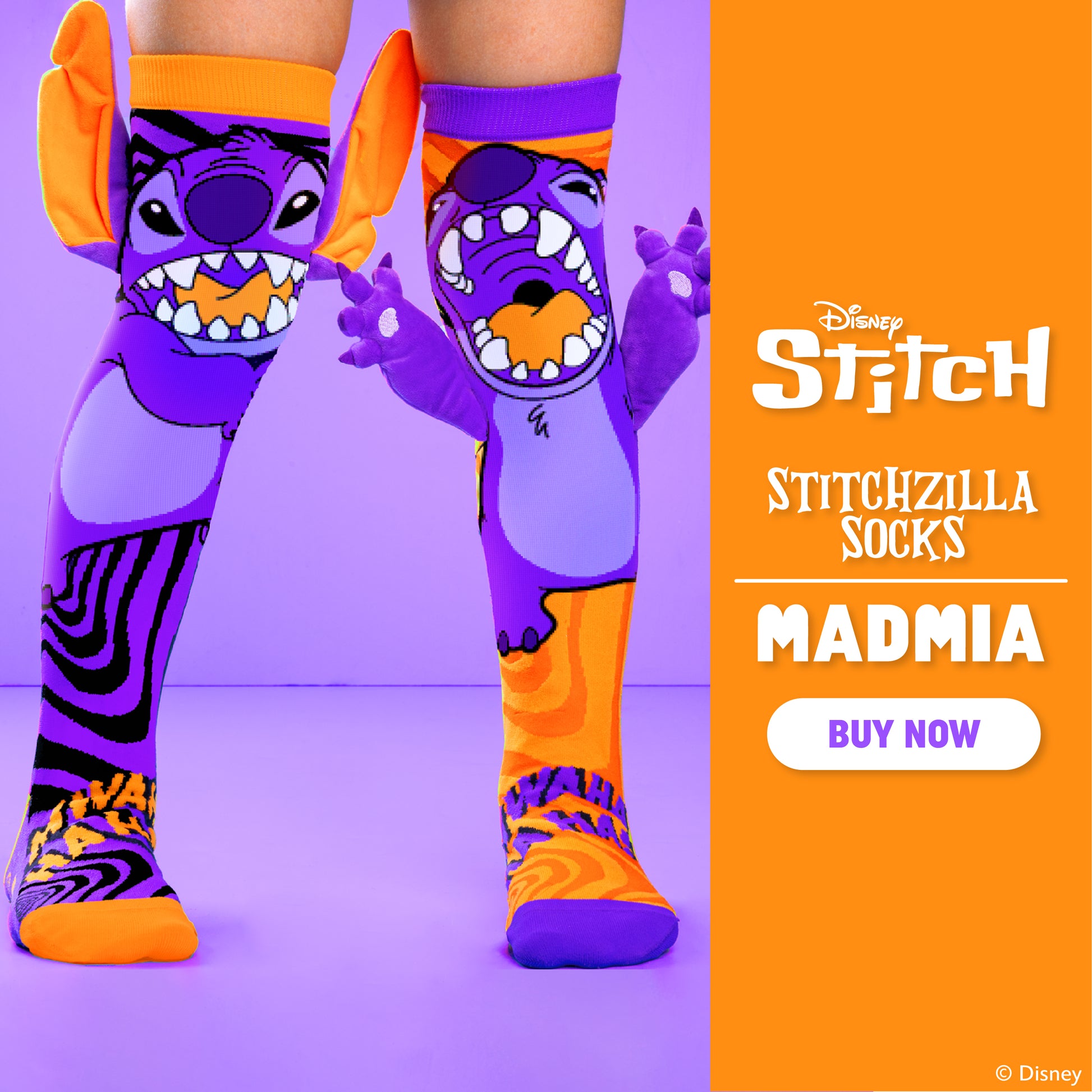 Step into Halloween with our newest Stitchzilla socks! Designed with striking purple-and-orange patterns and complete with 3D plush ears and claws, these socks bring Stitch’s wild side to life.