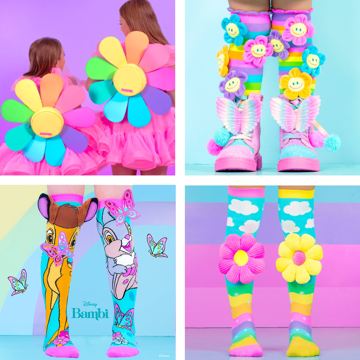 Step into MADMIA magic with our Crazy Daisy Backpack,Oopsie Daisy Socks, Bambi Socks and Flower Power! Our pack includes Crazy Daisy Backpack, Oopsie Daisy Socks, Bambi Socks & Flower Power valued at $239.60.