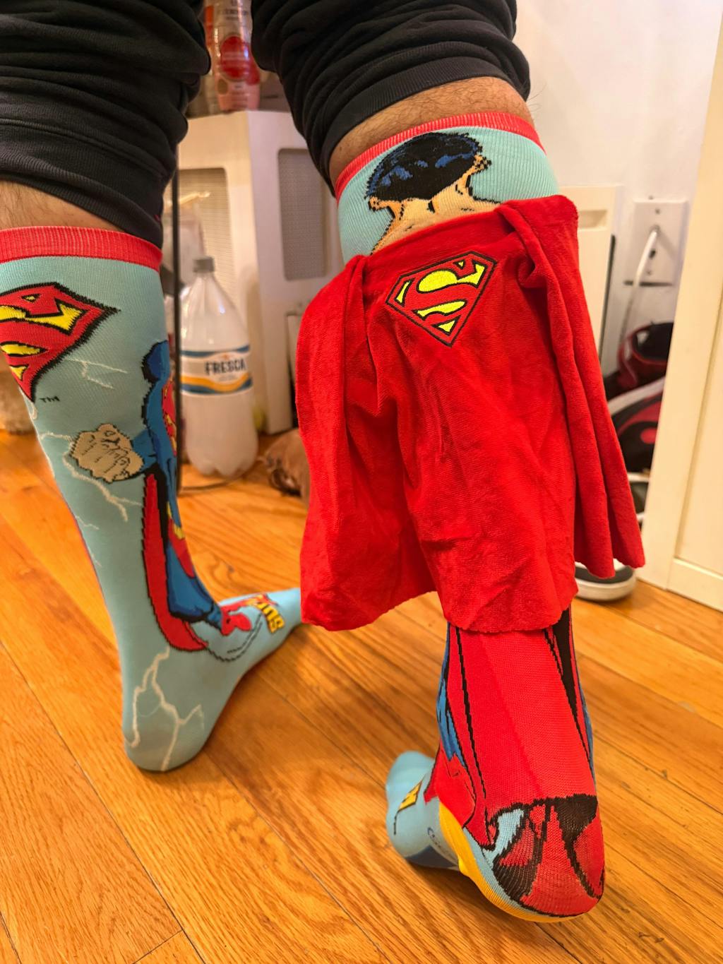 These custom-made socks feature a 3D-printed plush arm, velvet cape and embroidered logo at the back of the cape. Add an unexpected dash of comic book excitement to your daily wear. Stand out, make a statement, and unleash your inner DC superhero with our coolest Superman socks!